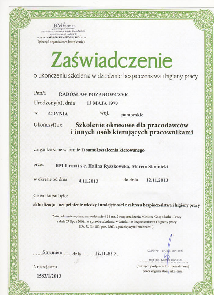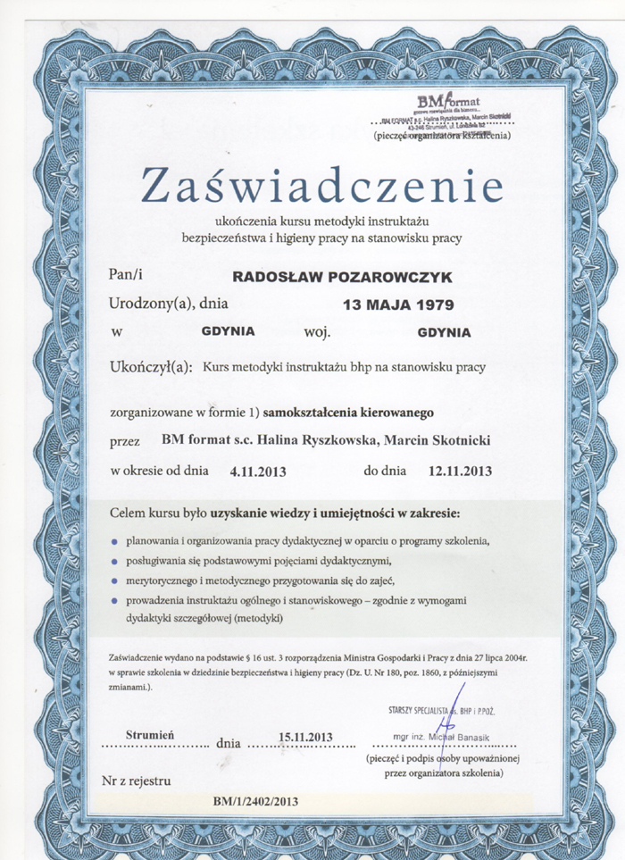 Certyfikaty, które posiadamy: